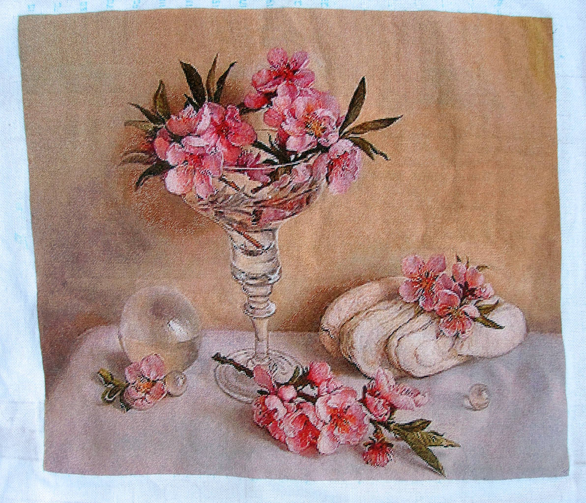 Отшив : Лена-roma Техника: счетный крест в 2 нити , по цветам Канва : производство Австрии, 18 каунт (светлый беж)