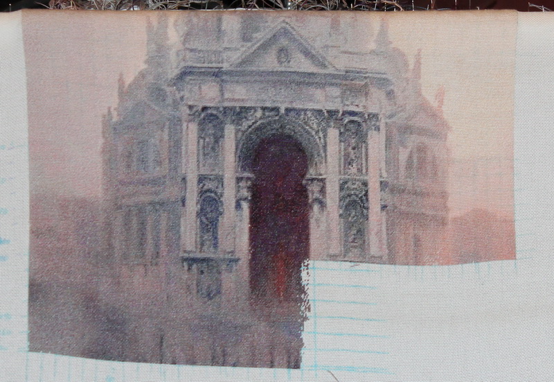 | Самая красивая часть здания как на ладони! Очень красиво, очень! Саша, у Вас совершенно незаметна горизонтальная граница между листами: это слабая натяжка стежков или секрет какой знаете ? Поделитесь, пожалуйста!