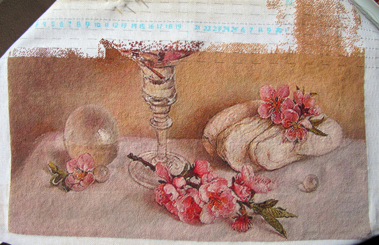 | Отшила очередные 10тысяч полукрестиков. Сняла с рамы, перешла на снапы. Все-таки на них мне удобнее всего. Ну и решила показать всю красоту сразу Вышивать очень комфортно. Но все-таки я люблю пейзажи. По мне так весь пейзаж как фон в натюрмортах. Сохраняется интрига стеклянной вазочки. Пока нравится то, что получается. Впереди еще куча цветочков и листочков. Вот где жесть