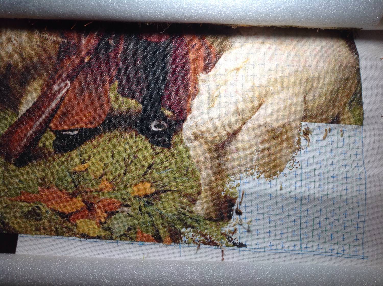 | Добрый день, вот я и закончила вышивать маленького охотника. Планировала закончить в апреле, у меня так и вышло, закончила 30 апреля в 23.55. Ночью фотографировать не стала , с утра постирала и в итоге на мокром на светлых местах проявились хвостики темных ниток. Когда высохнет - буду думать, что делать. А пока смотрите, пожалуйста . Напоминаю, вышивала ниточками ДМС ( их немного, на лице ) и в основном Роял. Канва Хард 22 Каунта, полукрест- петит.