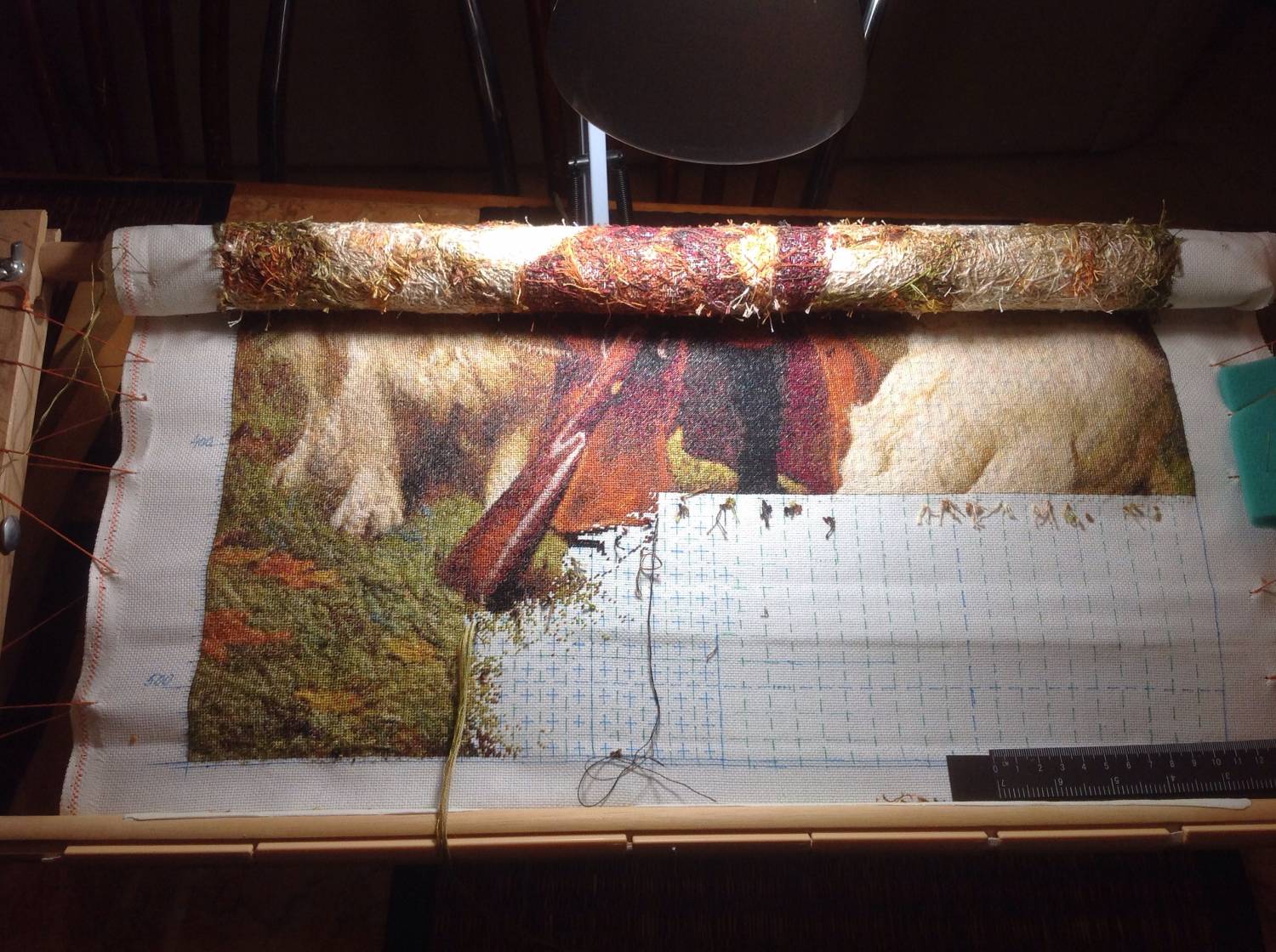 | наталииии, Наталия, отличная работа получается. Немножко жаль, что немного притормаживаете ее завершение, но я Вас даже очень понимаю - сама в такой ситуации. Хотя для такой немаленькой работы скорость отшива у Вас отличная. Но ничего, мы терпеливые, дождемся и мальчишку во всем обличье, и собацюг в полном составе. Скорого завершения Вам !