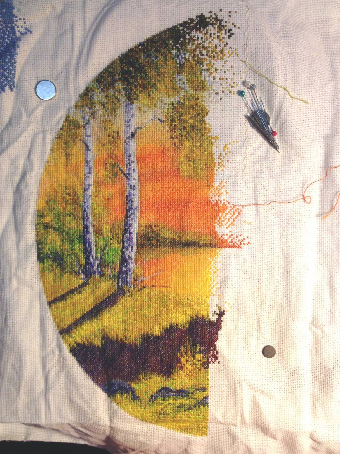 Видела продвижение осеннего кружочка в Одноклассниках. Очень красиво! А следующая работа, которая в планах у Натальи, еще лучше. Как же я люблю эти кружочки. А знаете, я купила ниточки СХС для пробы на зимний кружок. Сейчас летние беды и радости закончатся, все устаканится немного и я попробую зимний кружок быстренько сваять. Все-таки на мою березку у меня ушло всего 67 дней чистого времени... А Осенний хочу ПНК им. Кирова попробовать. Будет интересный эксперимент. Ну, а весну и лето ДМС. Эти кружочки мои самые любимые Наташа я...