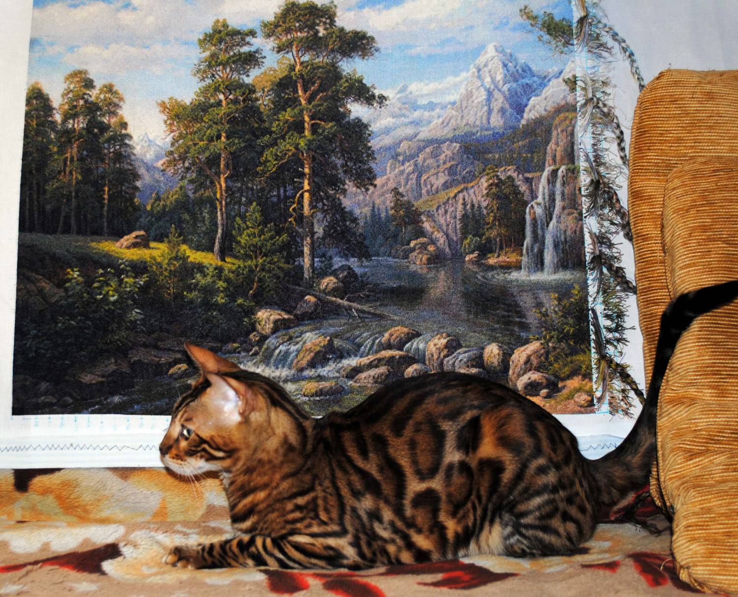 | Елена! Да, ёжики привыкли! И теперь, без работы такой сложности жить уже не смогут. :) Это мой кот, порода бенгал. Он большой 9 кг., кастратик! ООООчень мне помогает! Особенно с нитками и иголками!