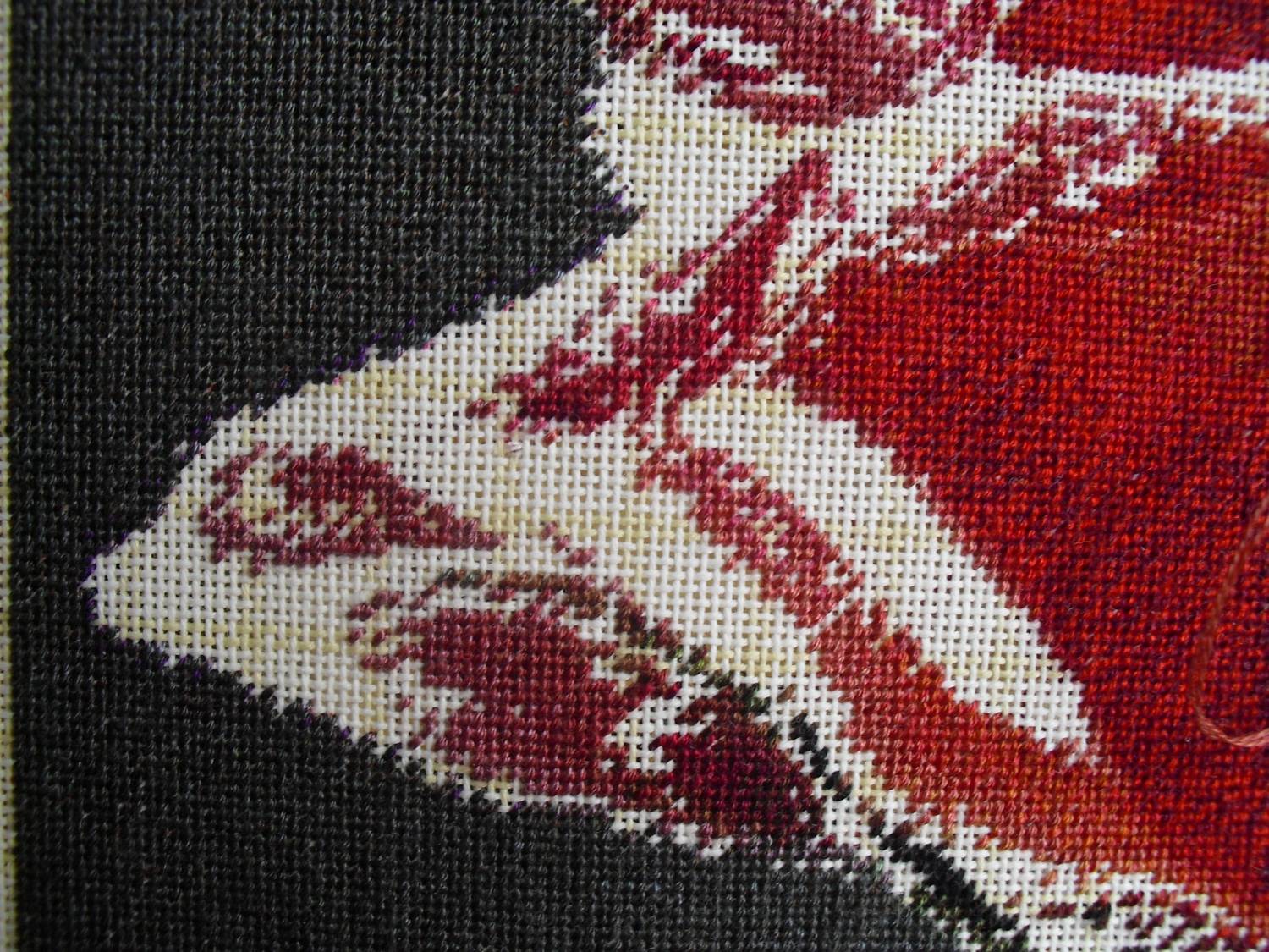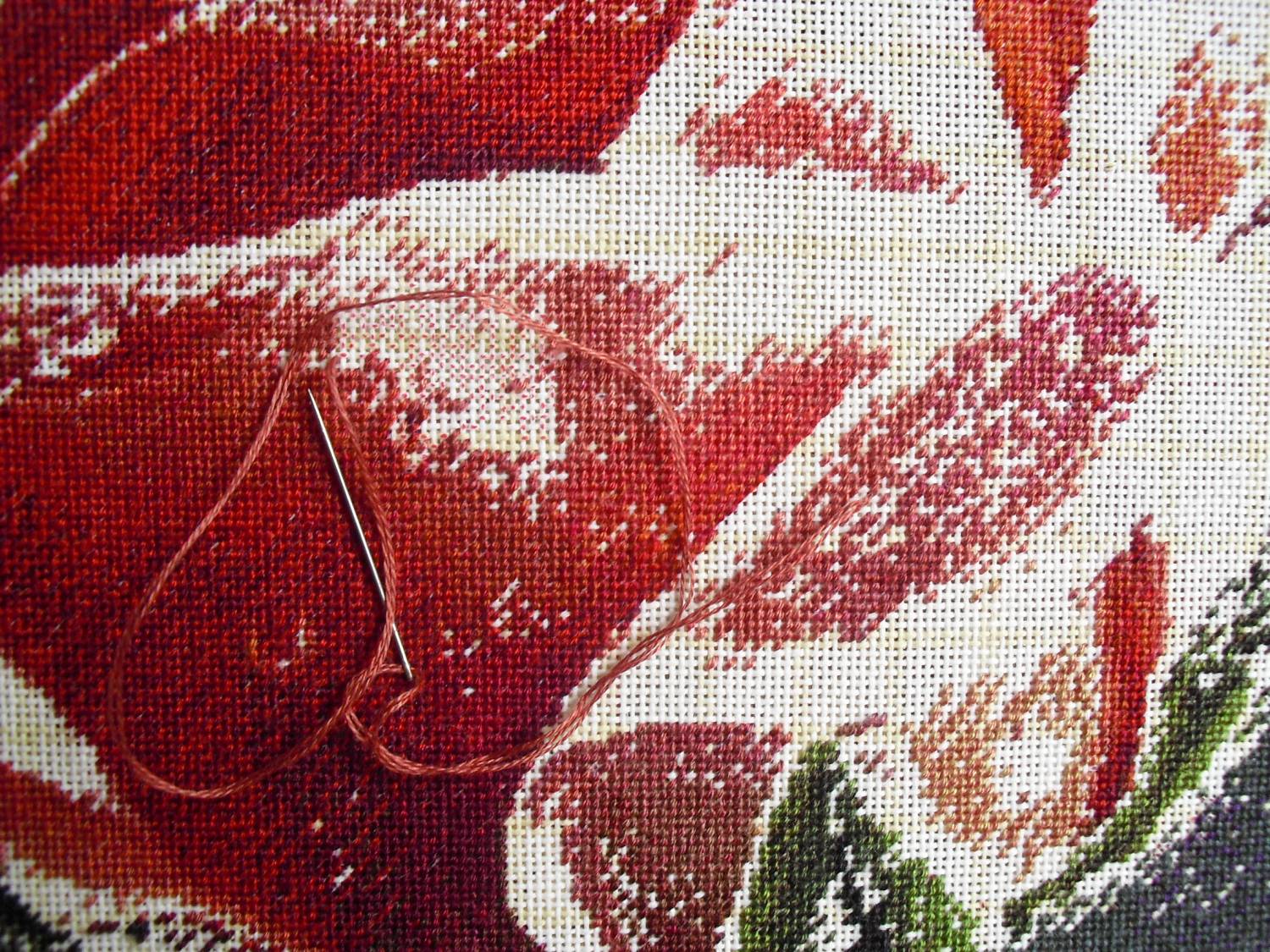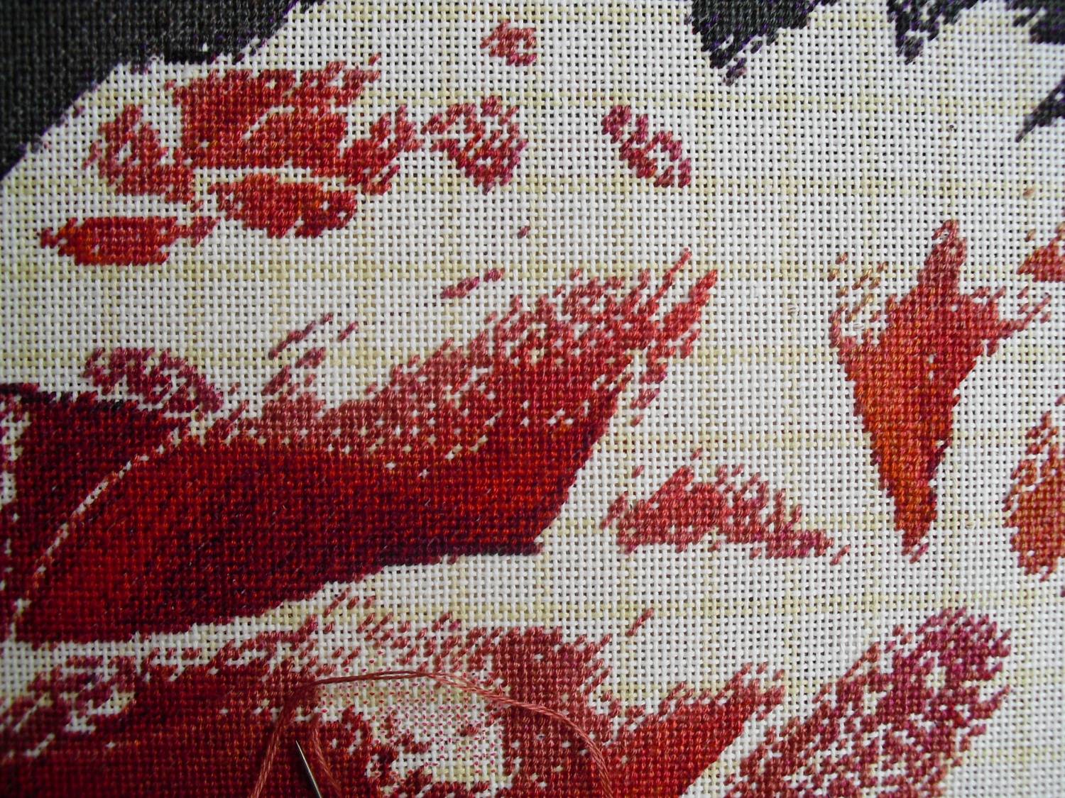 | Надо же. Я уже давно не видела развития процесса при вышивке по цветам. Чтобы не кусочками, а вся картина. Так интересно смотрится. Кажется можно уже и так оставить))) Помню вышивала по цветам (но в пределах листа) Афремова. При появлении каждого нового цвета аж дух захватывало. Чудесное преображение всей картины каждый раз вплоть до момента, когда самый последний крестик на свое место встанет. Спасибо за показ!