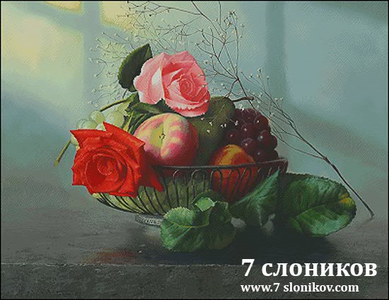 Натюрморт с розами и фруктами. Художник Алексей Антонов
