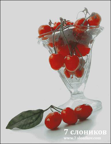 Когда на глаза в интернете попалась фотография, по которой сделана эта схема, была впечатлена простотой и изяществом натюрморта. Спелая черешня в запотевшем бокале настраивала на романтический лад...