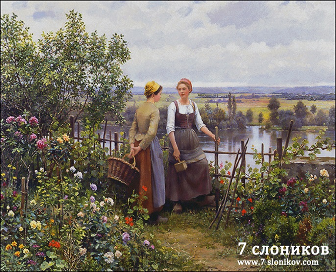 | Девочки, а какой цвет лица может быть у барышни, забивающей колья молотом огромных размеров?! :)))) Я бы не просто покраснела.... Шутка.... Людмила, Клавдия Дмитриевна тысячу раз права - не нужно переделывать, лицо этой деревенской девушки очень хорошо смотрится на фоне летней природы. И еще восхищает терпение исполнительницы - вышивает по цветам при таком количестве мелких деталей и очень аккуратно Жду продолжения!