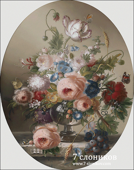 | Принесла вам показать начало очень красивого и нежного букета. Работы художницы Hildegard Schwammberger отличаются нежностью и романтичностью. Но стиль их написания сложен для создания схем. Меня терзали сомнения, получиться ли. На мой взгляд все удалось.
