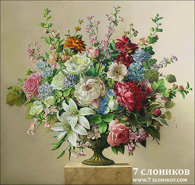 | Букет будет большой и шикарный. Крестик придает четкость вышивке. А исполнение выше всяких похвал.